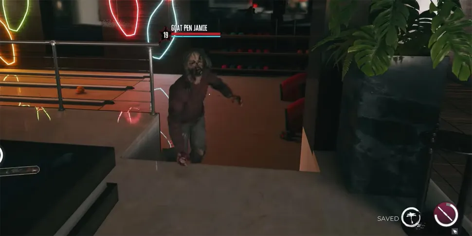 В любом случае, чтобы получить ключи, игроки должны отправиться на самый нижний этаж Goat Pen, где находится бар/аркада/боулинг. В помещении боулинга игроки должны увидеть зомби, пирующего на трупе в центре центральной дорожки. При дальнейшем осмотре они увидят, что это зомби по имени, Джейми из Goat Pen. Стоит отметить, что Goat Pen Jamie, скорее всего, будет разного уровня для каждого игрока, это связано с системой масштабирования уровней в Dead Island 2. Убейте Goat Pen Jamie на любом уровне (следите за другими мобами, которые появляются при этом), и он бросит ключи Goat Pen Master Keys.