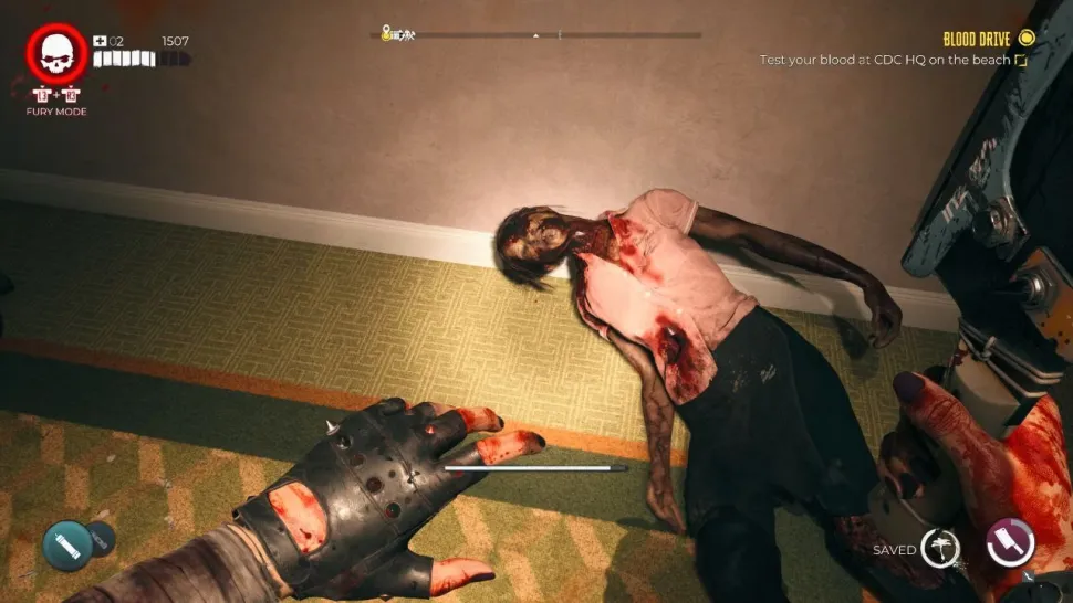 В сущности, есть два жизненно важных условия, когда дело доходит до выполнения "Топота по черепу". Во-первых, здоровье зомби должно быть меньше половины, что означает, что сначала нужно сделать дело с ходячей нежитью. Во-вторых, зомби должен быть сбит с ног на пол, прежде чем станет доступен прием "Топот по черепу". На экране появится подсказка в виде квадратной кнопки или кнопки X. Нажмите ее, и Истребитель с силой ударит по черепу несчастного зараженного, мгновенно положив конец его жизни.
