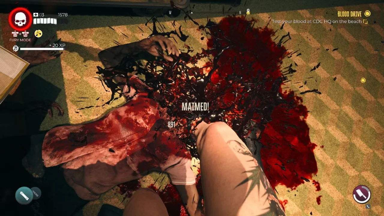 В сущности, есть два жизненно важных условия, когда дело доходит до выполнения "Топота по черепу". Во-первых, здоровье зомби должно быть меньше половины, что означает, что сначала нужно сделать дело с ходячей нежитью. Во-вторых, зомби должен быть сбит с ног на пол, прежде чем станет доступен прием "Топот по черепу". На экране появится подсказка в виде квадратной кнопки или кнопки X. Нажмите ее, и Истребитель с силой ударит по черепу несчастного зараженного, мгновенно положив конец его жизни.