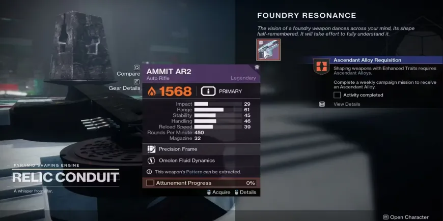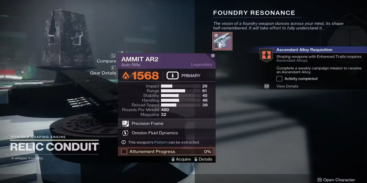 Наконец, игрокам нужно будет вернуться в Энклав и изготовить Ammit AR2 в Реликвии, завершив квест " Foundry Resonance".