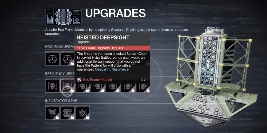 Когда игроки Destiny 2 получат модули Exo Frame, они могут задаться вопросом, на каких улучшениях им следует сосредоточиться в первую очередь. В начале сезона игрокам следует сосредоточиться на апгрейдах эффективности. Причина в том, что второй апгрейд в этом разделе гарантирует, что оружие с Deepsight Resonance выпадет с первым сундуком Seraph Chest, который игроки откроют на этой неделе.