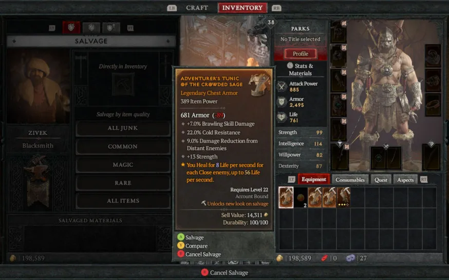 Помимо собственно использования, легендарное снаряжение можно либо продать, либо разобрать на редкие ремесленные материалы - и то, и другое удивительно важно в поздней игре, учитывая, как настроена экономика.