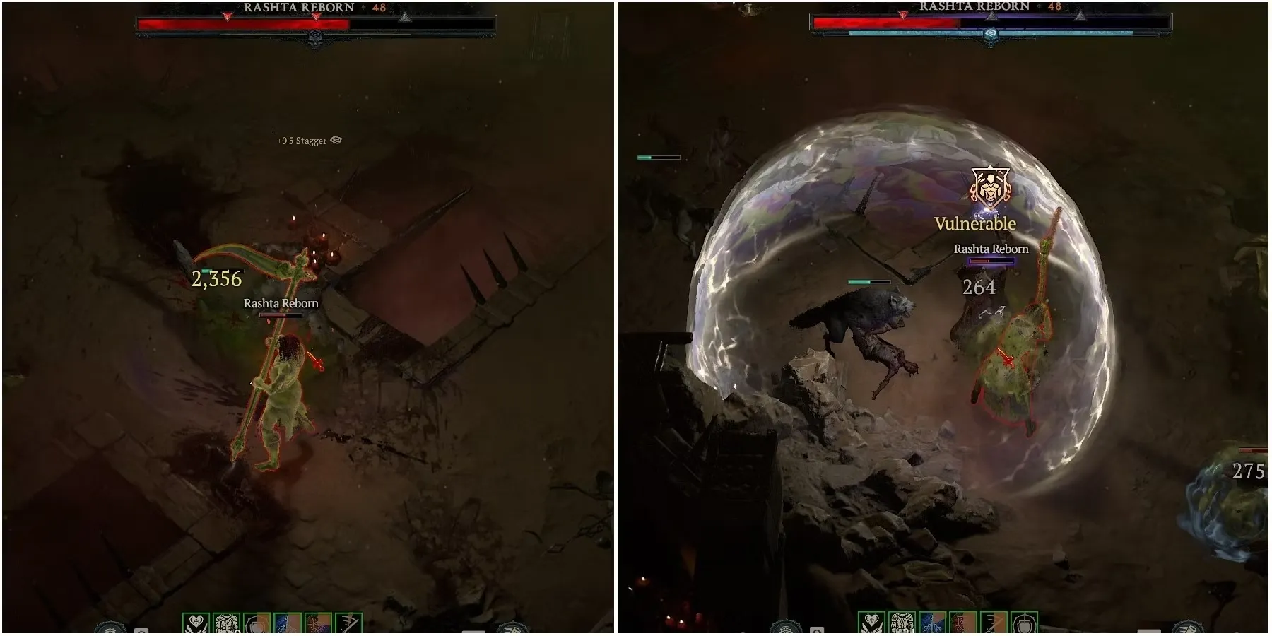 Хотя некоторые дебаффы действуют на боссов так же, как и на обычных монстров, эффекты Crowd Control в Diablo 4 вместо этого накапливают полоску Stagger. Под счетчиками здоровья боссов находится полоса, которая медленно увеличивается по мере того, как игроки наносят им все больше урона от КК. Когда счетчик Stagger достигнет своего предела, босс будет оглушен примерно на 10 секунд.