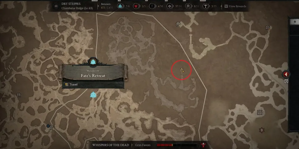 Местонахождение подземелья Fallen Temple Capstone в Diablo 4