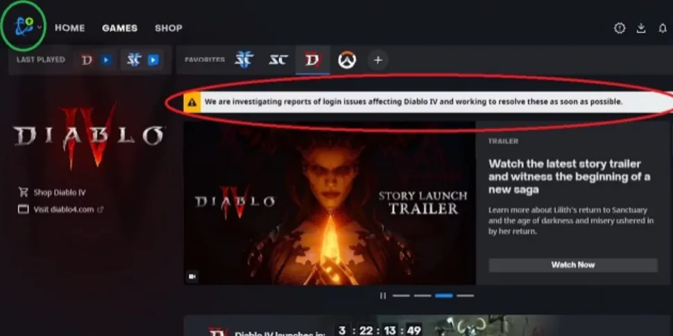 От компании Blizzard поступило краткое сообщение о том, что команда разработчиков знает об этой проблеме и собирается ее исправить. Теперь это сообщение больше не отображается на первой странице Battle.net, поскольку ошибка была исправлена. Чтобы получить это исправление, обновите пусковую установку с помощью значка в левом верхнем углу.