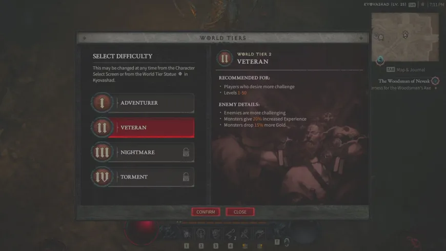 Уровень мира, который выбирает игрок, определяет многое: сколько врагов появляется, насколько они выносливы, как сильно бьют и многое другое. Однако за каждый бафф, который получают враги, игрок также получает огромный скачок в количестве получаемого XP и качестве лута. Чем выше сложность, тем больше награда.