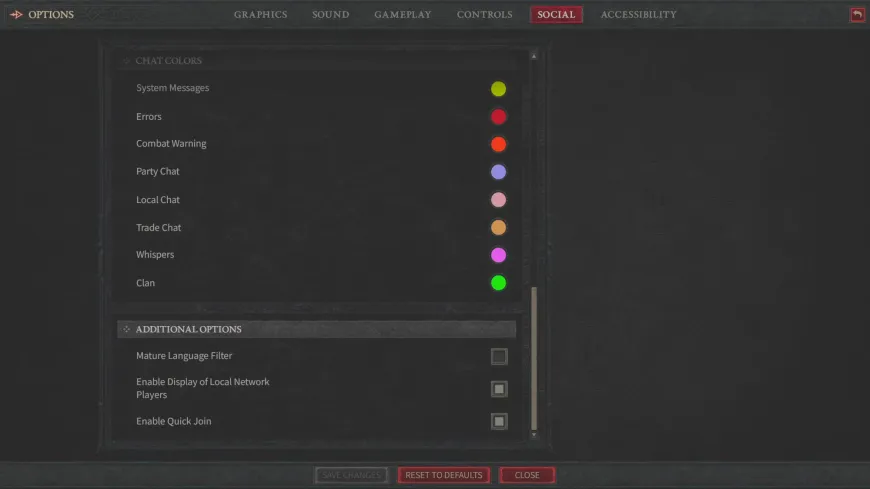 - Если игроки не видят никого, кто находится в их локальной сети, перейдите в меню "Параметры" и прокрутите до нижней части вкладки "Social". Включите там настройку "Включить отображение игроков локальной сети".