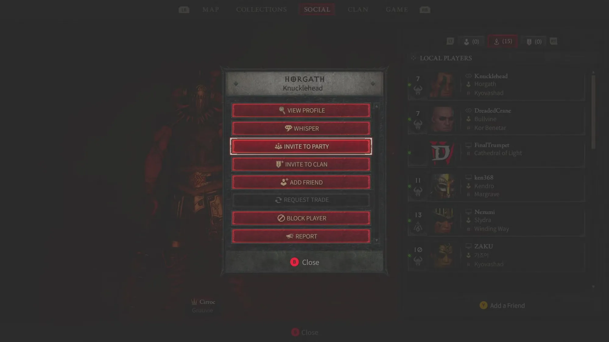 - Выберите друга для добавления в партию, а затем выберите Invite to Party.