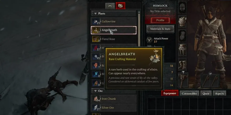 - Материалы. Вместо того чтобы загромождать пространство инвентаря или требовать использования другой сумки, здесь хранятся все сырьевые материалы, собранные в дикой среде. Сюда входят растения, шкуры, руды и драгоценные камни.