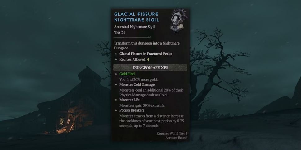 - После того как будет собрано достаточно ресурсов, игрокам следует посетить торговца-оккультиста, который может выковать легендарные аффиксы и знаки кошмара для игроков в эндшпиле. Для вызова Зверя во льду игрокам необходимо изготовить предмет под названием "Кошмарный символ ледниковой трещины".