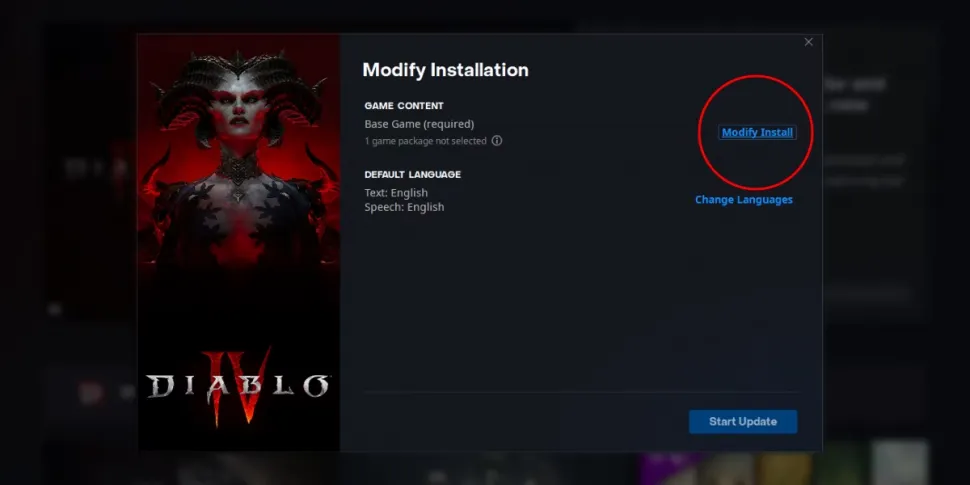 Для игроков, которые уже установили Diablo 4, перейдите в левую нижнюю часть экрана и нажмите на значок настроек справа от кнопки Play. Во всплывающем меню выберите "изменить установку". Если этот пункт отображается серым цветом, возможно, игра обновляется, поэтому просто дождитесь его завершения и повторите попытку.