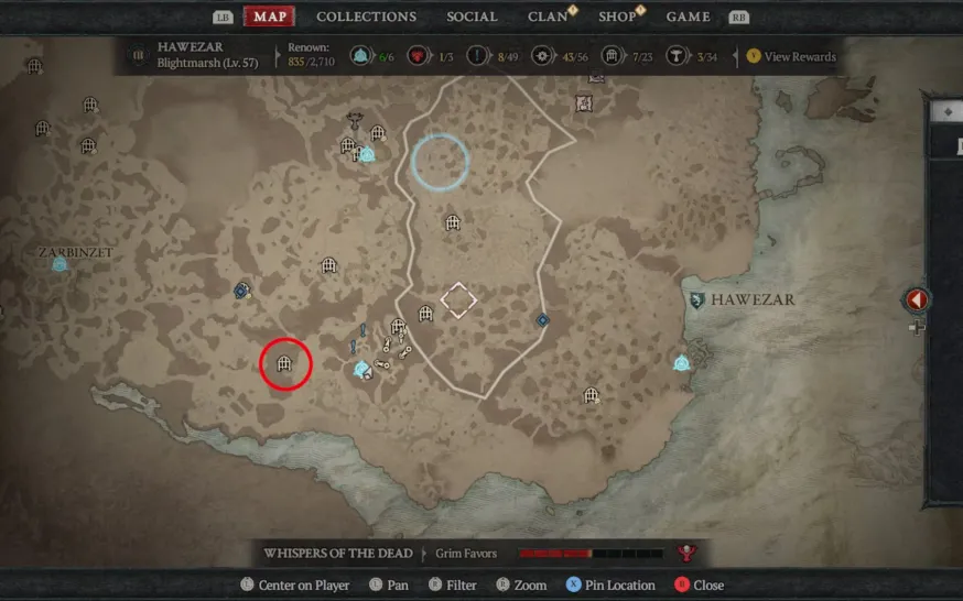 Лучшим фармом XP после выхода 8-го обновления являются Руины Эриду, подземелье в регионе Хавезар в Diablo 4. Точнее, Руины Эриду находятся в Токсичных болотах, а Вереш - это ближайшая путевая точка. Для полной ясности точное расположение этого подземелья отмечено на карте, которая находится ниже, а игрокам, которые испытывают задержки при приближении к нему, стоит подумать об отключении межсетевой игры в разделе Social меню Options.