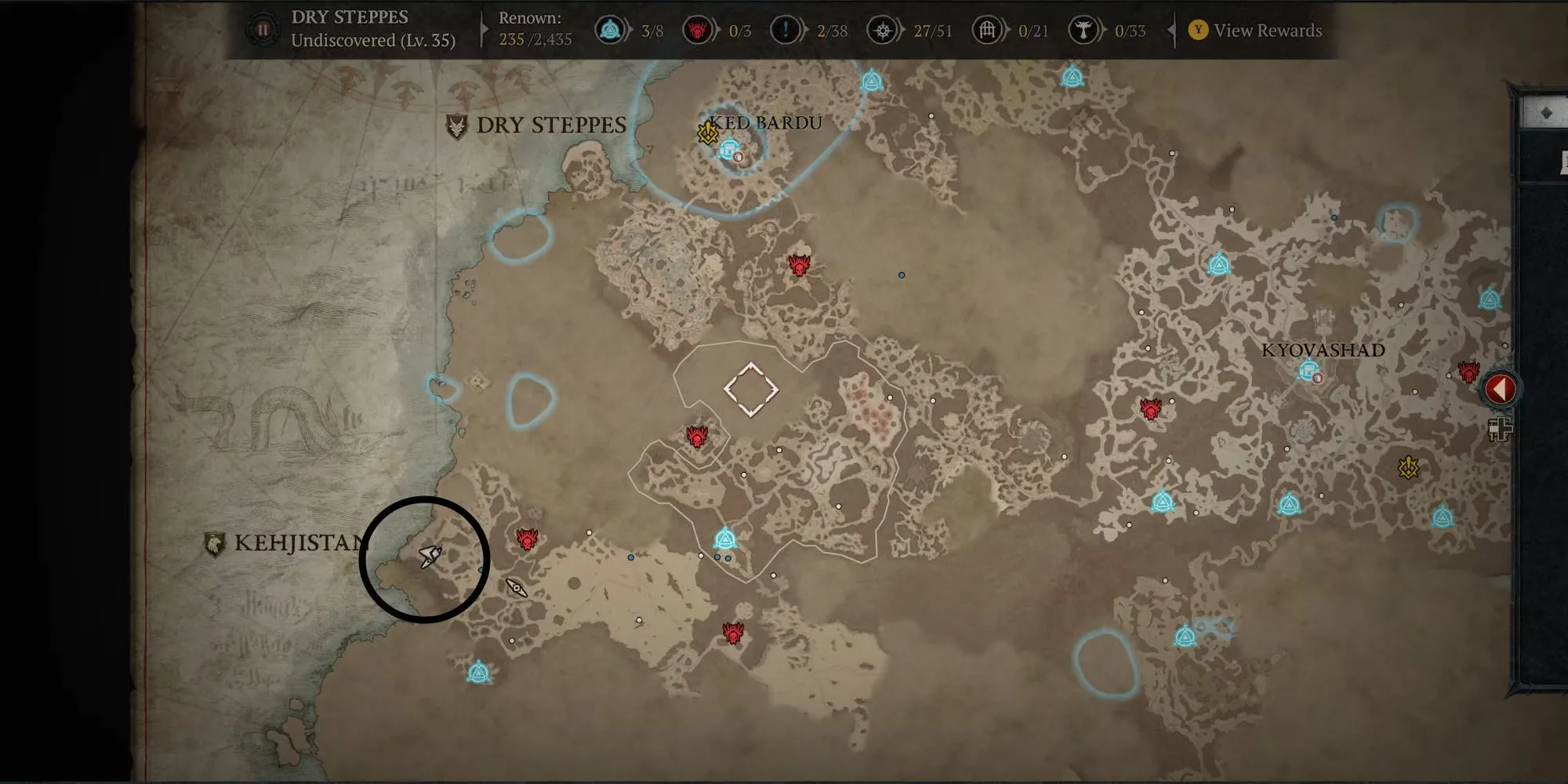 Побочный квест Pilgrim's Footsteps находится в районе Янтарных песков в зоне Кехджистан. Его можно найти на карте, отмеченной черным кругом, к западу от Кьовашада и к югу от зоны Сухих степей.