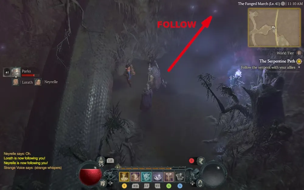 Следует отметить, что на ранних стадиях прохождения этого квеста союзники могут застрять или исчезнуть, и, похоже, это происходит, когда игроки направляются к западной стороне гигантской змеи. Если игрок обнаружит, что его союзники действительно застряли, ему следует просто выйти на экран выбора персонажа и снова войти в игру. Эти действия приведут к перезагрузке главного квеста Diablo 4, что даст игрокам еще один шанс остаться на восточной стороне змеи.