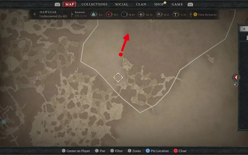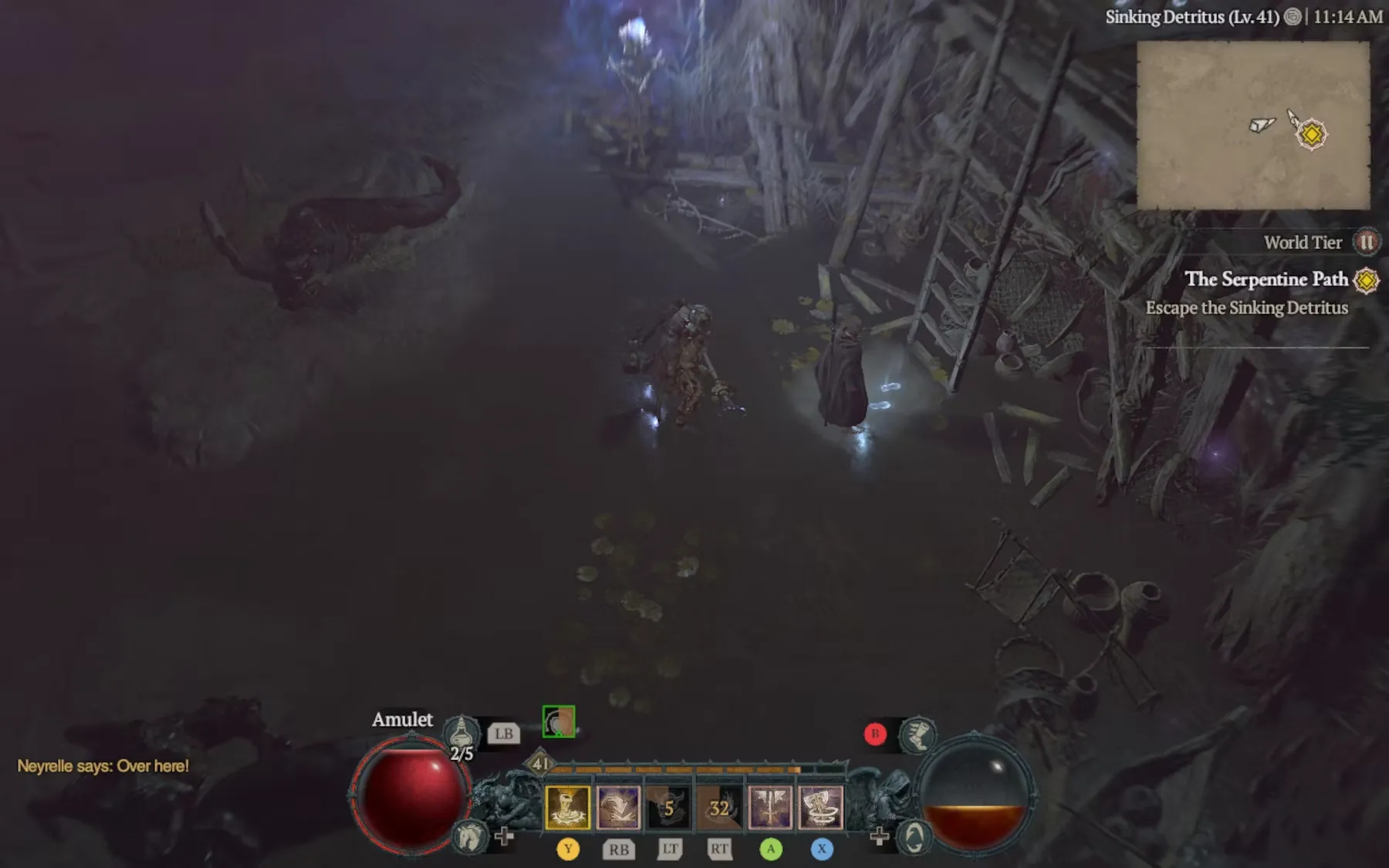 После начала квеста Serpentine Path игроки должны отправиться на север и поговорить с Нейрелом на восточной стороне гигантской змеи. Когда разговор закончится, игроки должны продолжить путь на север, следуя вдоль восточной стороны змеи, чтобы добраться до Тонущего Детрита. На самом деле, хотя на мини-карте это не указано, существует путь, который ведет вверх от позиции Нейрелла в Хавезаре Diablo 4, и он выделен на изображении выше.