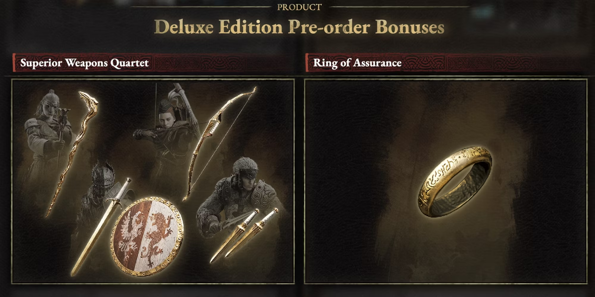 В Dragon's Dogma 2 есть два разных уровня бонусов за предзаказ, которые зависят от того, какое издание приобрел игрок. Как в стандартном, так и в делюкс-издании будет доступен бонус предварительного заказа Superior Weapon Quartet. Кроме того, в Deluxe Edition Dragon's Dogma 2 будет доступен бонус предзаказа Ring of Assurance.