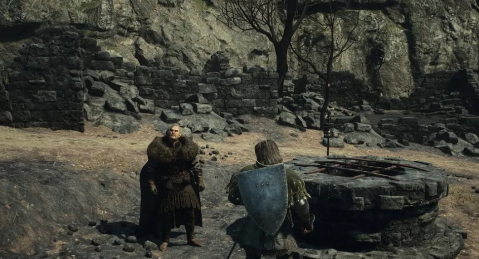 Когда вы разберетесь с драконом или не встретите его, начните поиски у каменной арки на входе в деревню. Вы ищете солдата в большой накидке с мехом вокруг плеч. Его седые волосы зачесаны вперед, а бока выбриты. Он выделяется в Dragon's Dogma 2.