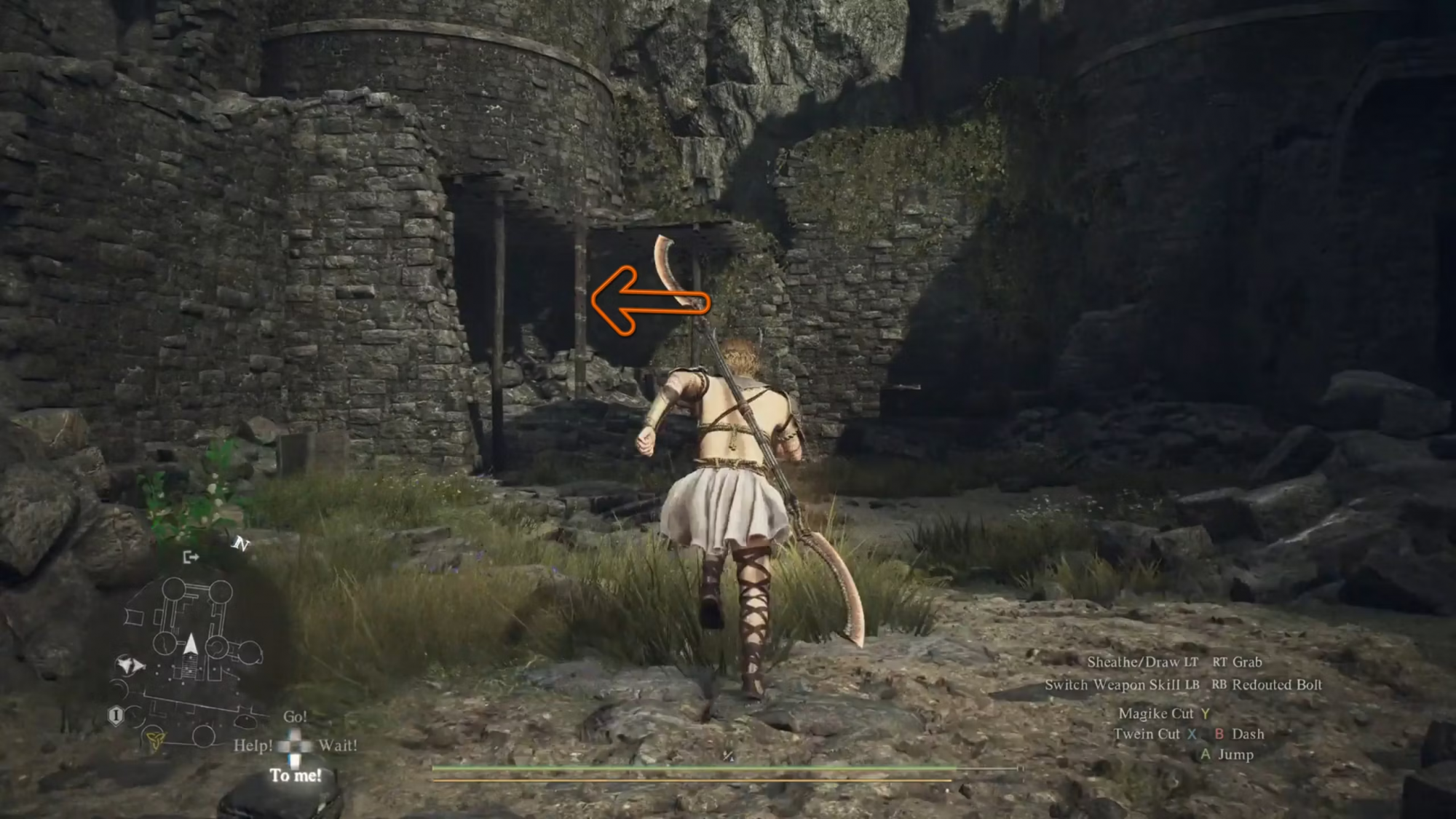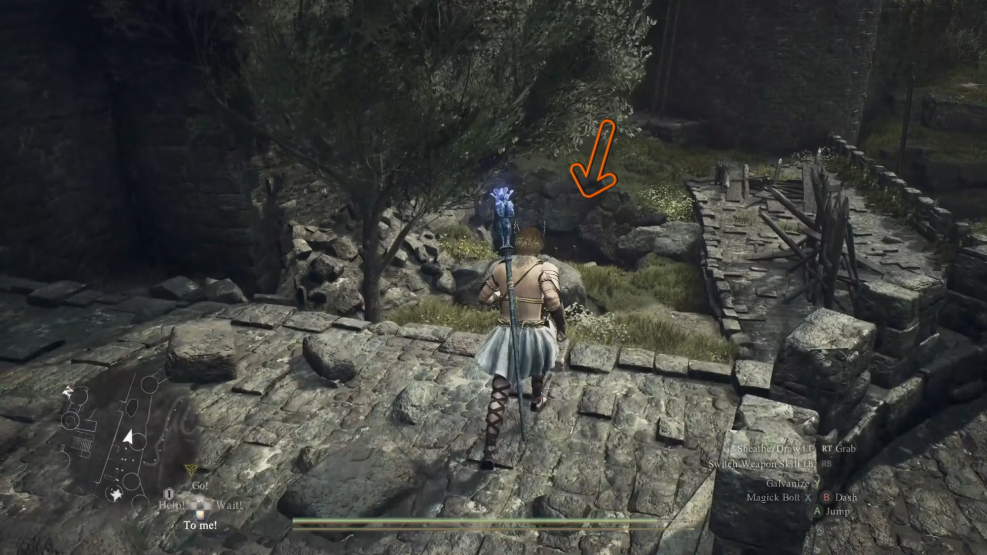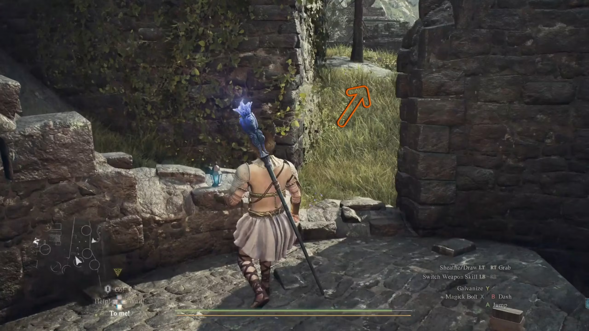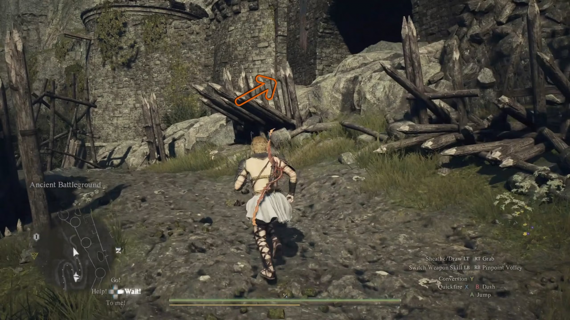 Выйдя из города, отправляйтесь сначала на север и продолжайте идти по тропе, пока не дойдете до скал, с которых можно спуститься. Продолжайте двигаться на север, а затем на восток, пока не придете к западному входу в Древнее поле битвы.