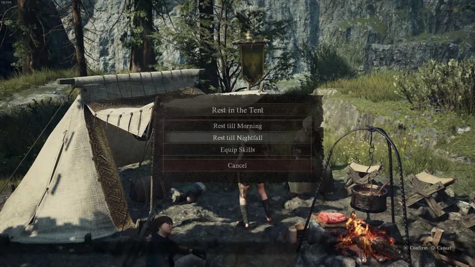 Как только вы разобьете лагерь, вы сможете взаимодействовать с палаткой и выбирать, когда проснуться. Если вы собираетесь отправиться в ночное путешествие, будьте хорошо подготовлены, так как окружающая обстановка станет намного опаснее.