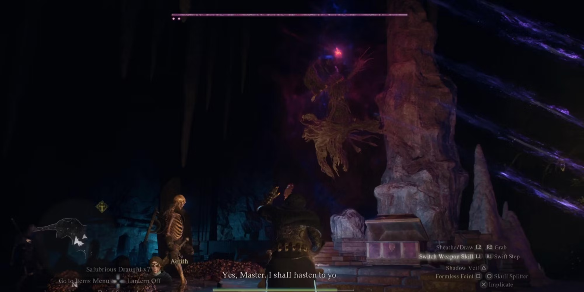 Исследуйте пещеру и доберитесь до второго этажа, где найдете сундук. Взаимодействуйте с ним и откройте его, чтобы вызвать Вайта, колдуна-нежить, который является боссом с тремя полосками здоровья. Этот босс может быть довольно сложным и временами раздражающим, потому что он умеет летать, из-за чего бойцам и воинам ближнего боя сложнее атаковать босса. Такие профессии, как маги и лучники, не должны испытывать проблем с его уничтожением.