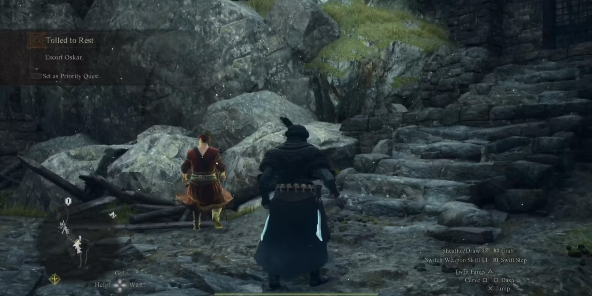 Пройдя мимо кемпинга, вы найдете NPC, на которого нападают несколько монстров. Разберитесь с ними, и Оскар попросит вас сопроводить его к кенопату на Древнем поле боя. Это положит начало квесту "Покои", и вам придется следовать за ним и разбираться с многочисленными скелетами, которые будут попадаться вам на пути. Вскоре вы доберетесь до места, где он позвонит в колокол. На этом квест будет завершен, и вы получите 3000 XP, 9000 золота и ключ от Древнего поля боя. Вы также можете забрать Клич Смерти Нации, который находится впереди. Здесь же можно открыть сундук, чтобы найти ключ Makeshift Vault, открывающий хранилище Вермунда.