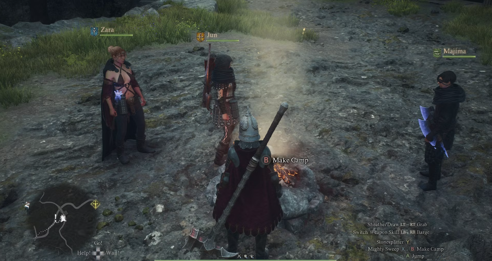 Путешествуя по широкому миру Dragon's Dogma 2, вы будете натыкаться на костры, у которых можно отдохнуть. Неважно, день сейчас или ночь, вы все равно сможете разбить лагерь. Вы заметите столб дыма, выходящий из костров, так что их легко обнаружить, и они будут отмечены на вашей карте, как только вы их найдете.