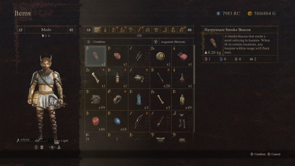 Выполнив эти действия, откройте меню и перейдите к предметам. Используйте дымовой маяк гарпий.