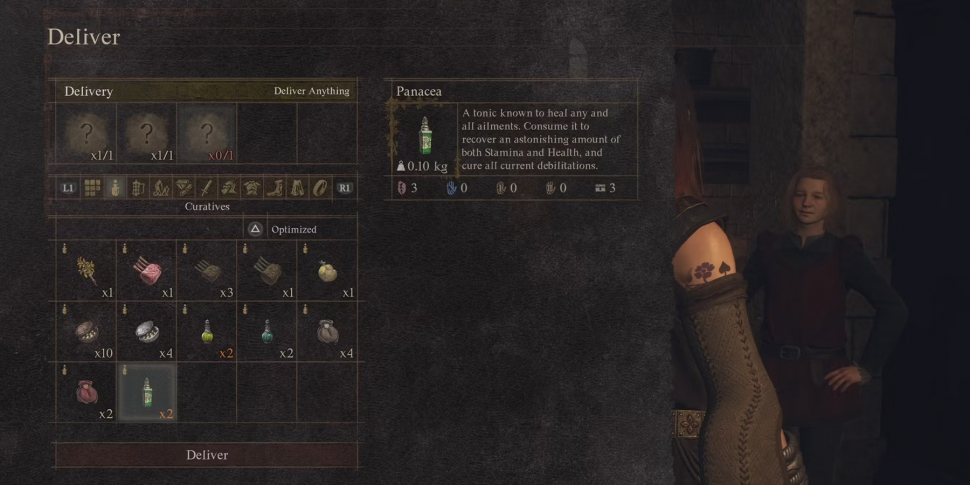 В поместье Диана оденет Дафну и поможет ей вжиться в роль, а затем все перейдут в столовую, чтобы подготовиться к путешествию Себастьяна в Мельве. Далее Арайзен должен поговорить с Дафной и Дианой, а затем дать Себастьяну три лекарства, способные излечить от недуга и сна в Dragon's Dogma 2. Зелья "Сила пробуждения" и "Панацея" - вот некоторые из зелий, которые игроки могут дать мальчику.