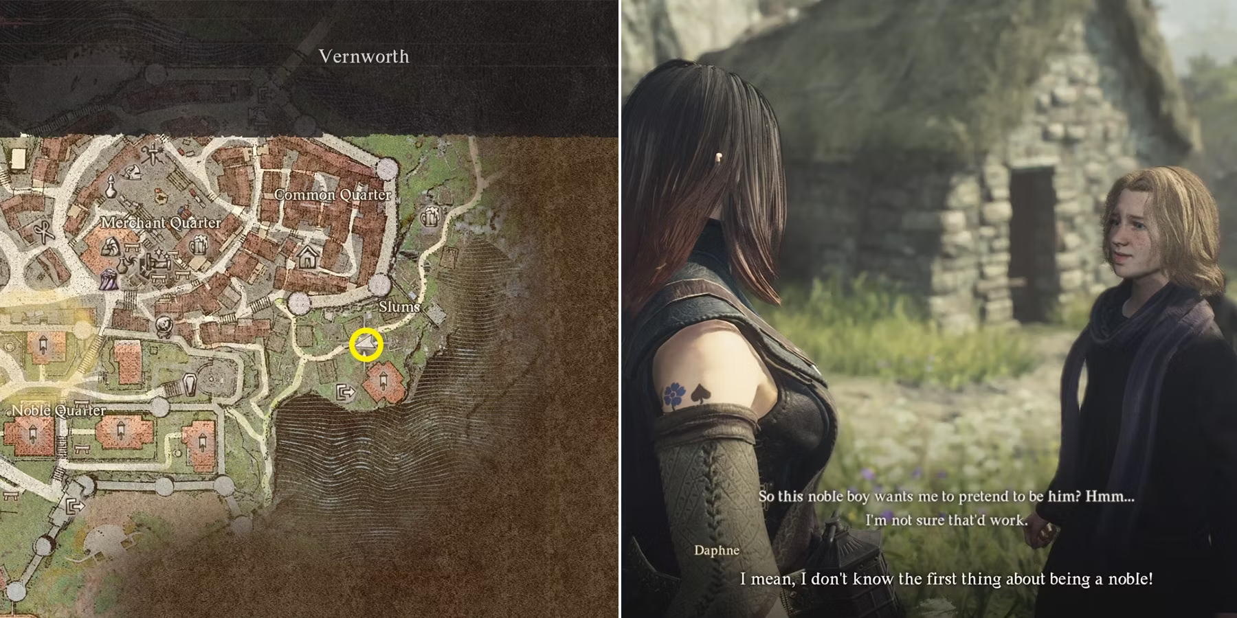 Игроки встретят Дафну в Трущобах во время выполнения квеста The Gift of Giving в Dragon's Dogma 2. Она - вылитый Себастьян, что вызывает подозрения в ее истинной сущности. Чтобы доказать эти подозрения, мать Себастьяна впадает в панику, увидев хрупкую девушку в своем поместье, и увольняет горничную сразу после завершения квеста.