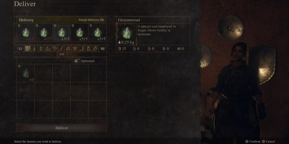 Игроку предстоит собрать 15 Глиммеруголь. За каждый собранный кусок зеленой руды можно получить только один уголь, поэтому игроку придется исследовать пещеру, чтобы найти 15 таких пятен.