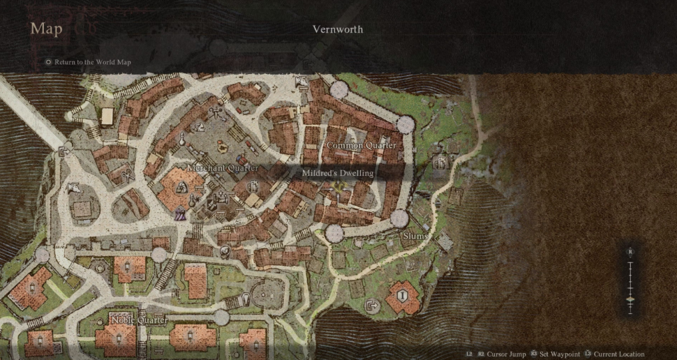 Вы можете последовать за ней или зайти в ее дом позже. Он расположен на карте города Вернворт под баннером в "Общем квартале" с надписью "Жилище Милдред".