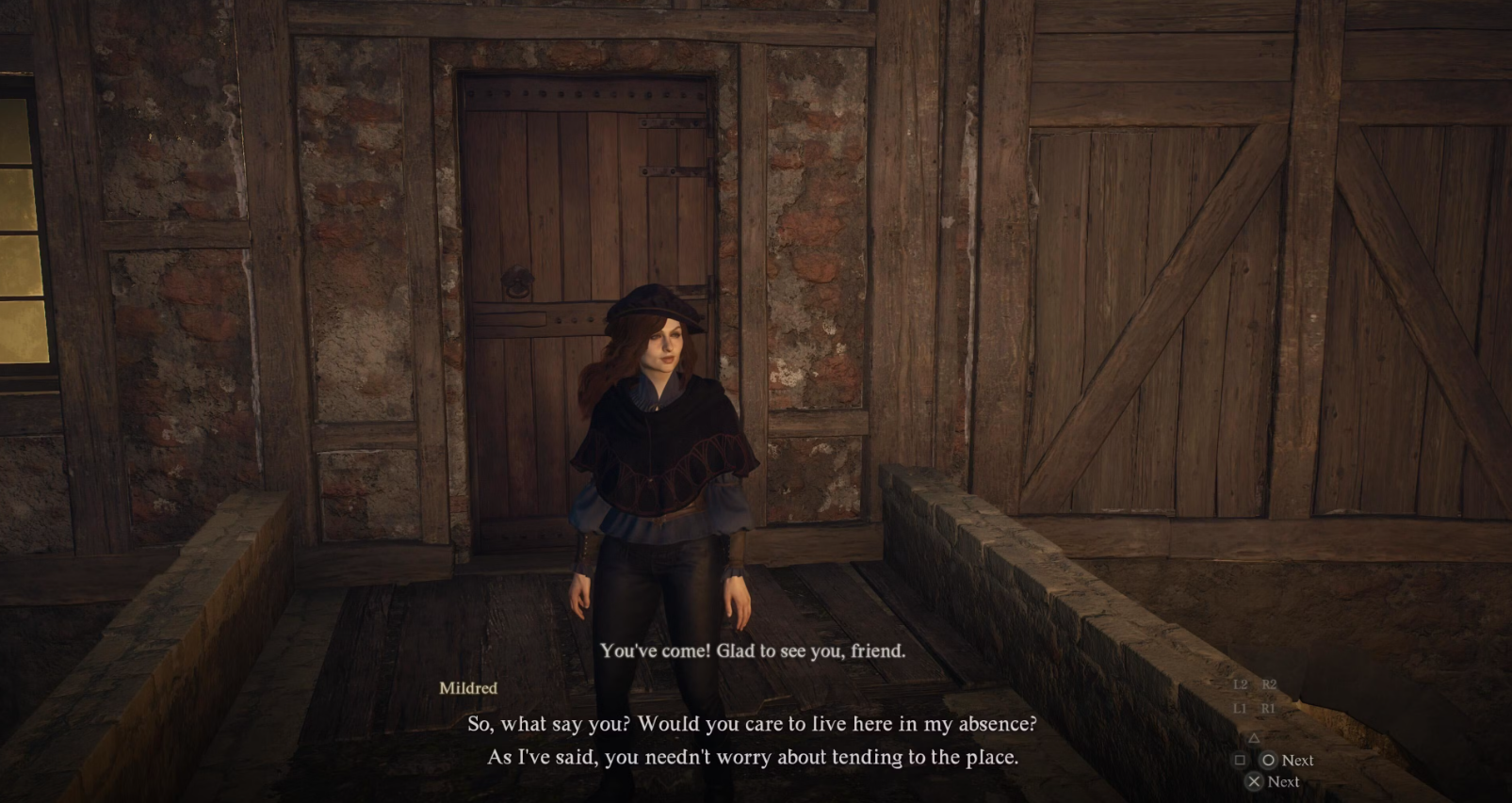 Получив квест, вам останется только отправиться в жилище Милдред, где она с удивлением отреагирует на ваше появление. Продолжайте диалог до тех пор, пока Милдред не скажет, что ее не будет около недели, прежде чем она вернется.