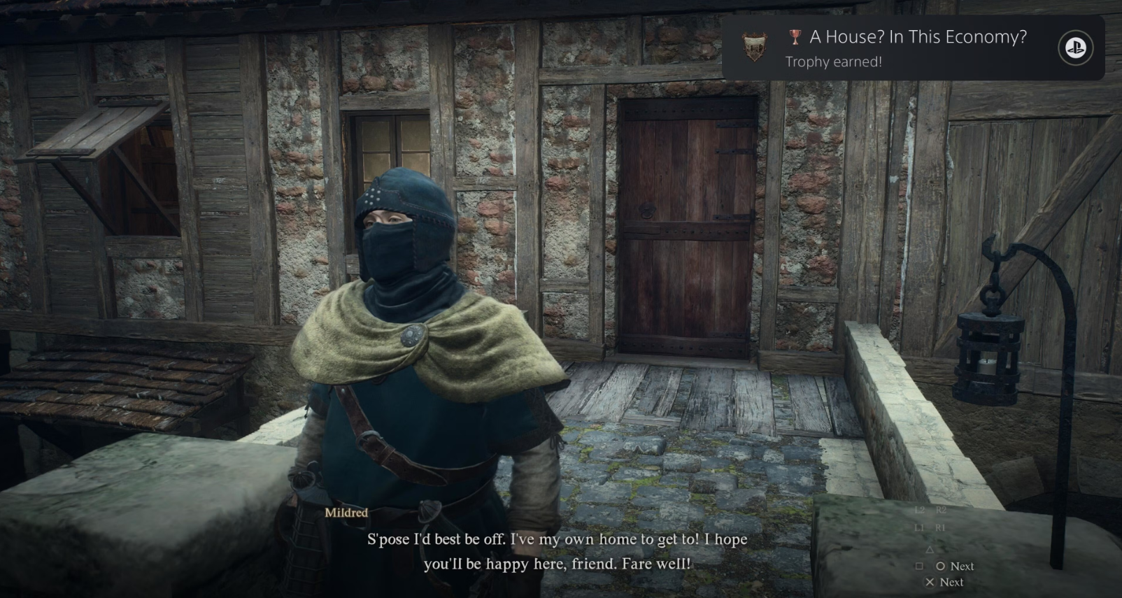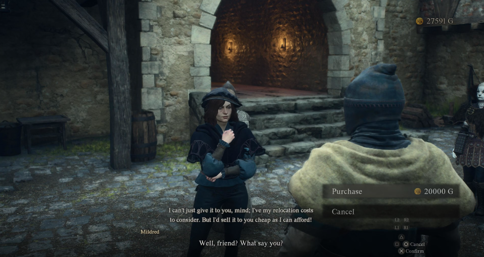 Когда Милдред вернется, она будет ждать у дома, чтобы поговорить с вами. Когда вы с ней поговорите, она расскажет вам о своих путешествиях и сообщит, что намерена продать дом за 20 000 золотых, а это совсем не маленькая сумма.