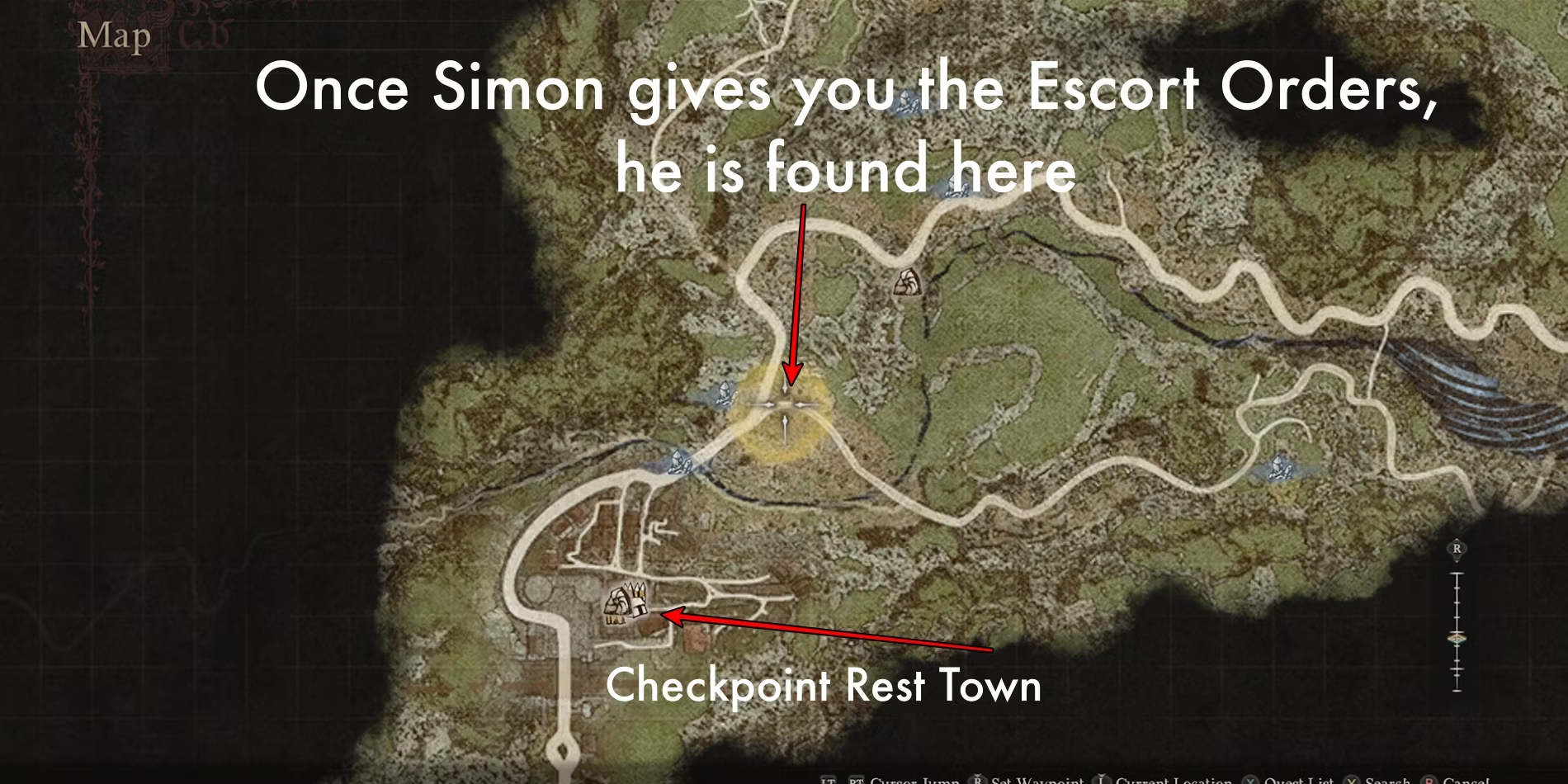 Следующим шагом будет отправиться в Городок отдыха на западе Вермунда и приступить к выполнению задания. Смотрите карту выше, чтобы найти точное место, где Саймон и повозка будут ждать Августина, человека, которого должен сопровождать Арайзен.