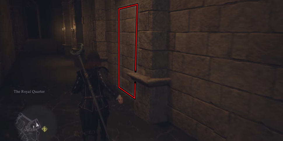 От входа идите направо в тот же коридор и обходите комнаты, пока не найдете простую стену между двумя складскими помещениями. Подойдите к стене, так как она служит секретной дверью, ведущей в замок Бордельри в Dragon's Dogma 2.