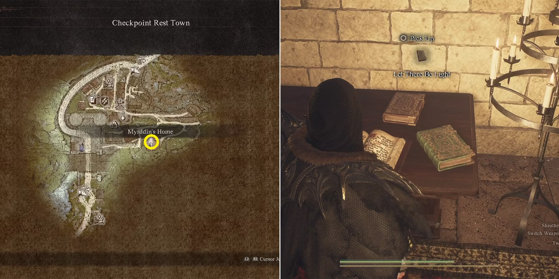 Арайзены могут получить гримуар There Be Light в кабинете Мирддина на втором этаже. Игроки могут экипировать комплект "Придворный", чтобы войти в его дом непринужденно, или подняться на гору за домом и пробраться внутрь.