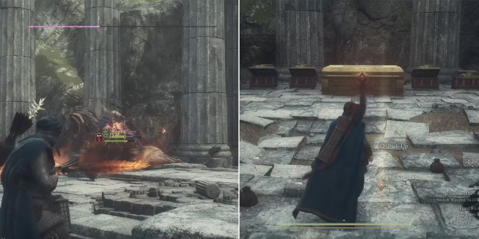 После успешного ответа на все загадки Сфинкс переместится в другую локацию с золотым сундуком сокровищ в Dragon's Dogma 2. Перед уходом он расскажет Арайзену загадку воссоединения.