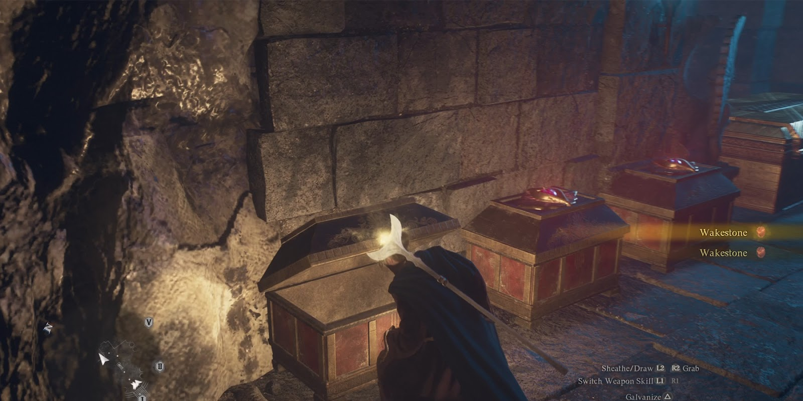Как только Печать фалиона окажется в руках игроков, вернитесь к Сфинксу и отдайте предмет обратно. Завершив "Загадку глаз", вы получите Вейкстоун и Запечатывающую фалию, которые находятся в сундуке с сокровищами за Сфинксом.
