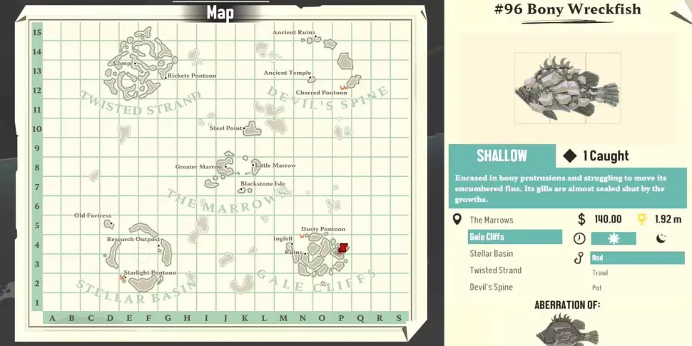 Wreckfish - одни из самых востребованных и прибыльных рыб в мире Dredge. Существует несколько разновидностей, начиная от стандартной Wreckfish и заканчивая Shattered Wreckfish. Но самой ценной является Bony Wreckfish, которую обычно можно найти на юго-восточной стороне Gale Cliffs.