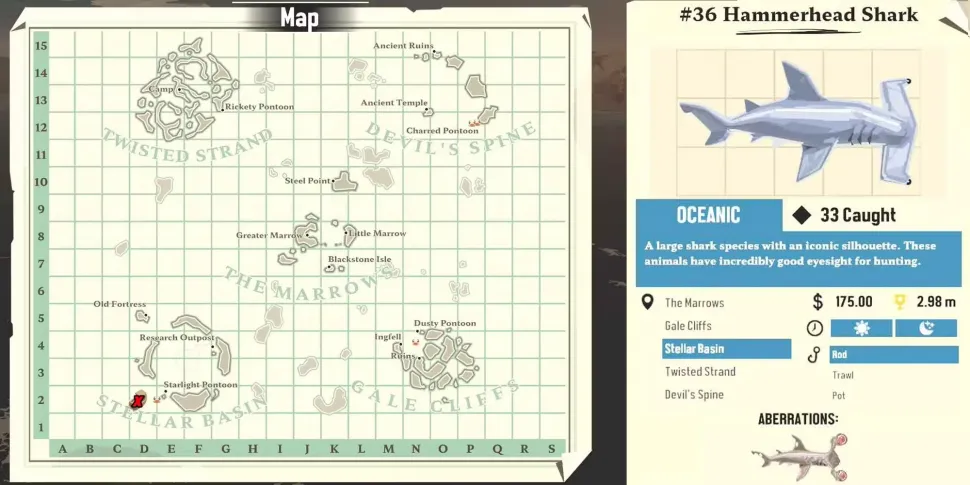 Этого легендарного океанского хищника можно встретить в океаническом регионе вокруг Звездного бассейна. Хотя они не представляют угрозы для самого корабля, их сложно организовать и расставить из-за их почти лестничной формы в менеджере инвентаря. Игрокам, скорее всего, потребуется корпус уровня 2 или выше, чтобы разместить на палубе более одного из этих плохих парней. Но за 175 долларов они являются одним из самых выгодных уловов не-мутантов в игре, поэтому они стоят того места, которое занимают.