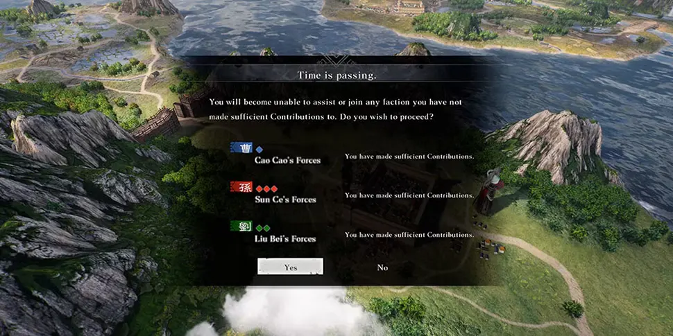Каждая фракция предлагает свой набор сражений, союзников и противников. Став на сторону Лю Бэя, вы не встретите некоторых ключевых персонажей армии Цао Цао или Сунь Цзяня. Более того, события некоторых битв развиваются по-разному в зависимости от выбранной стороны.