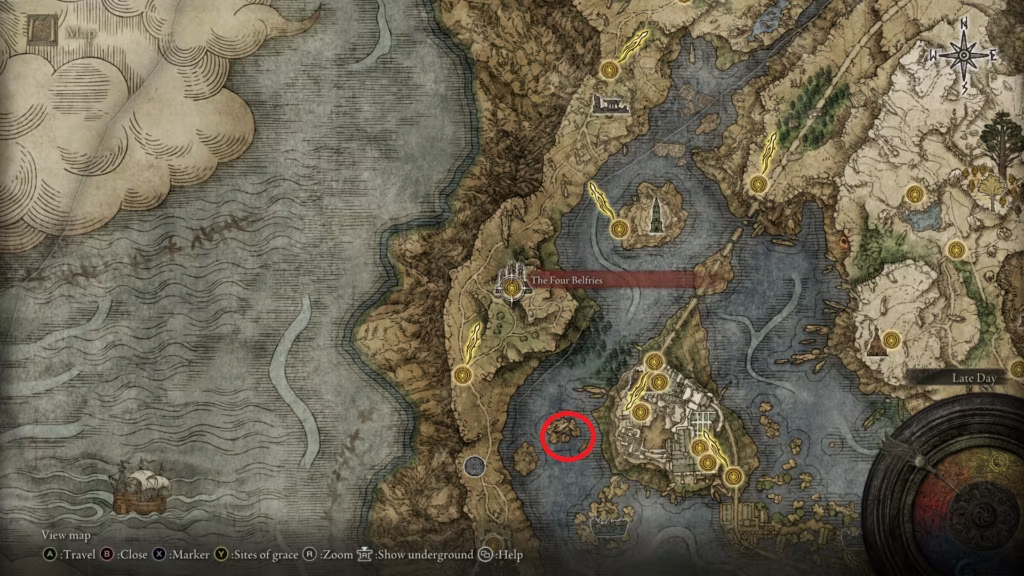 Остров, о котором идет речь, можно увидеть на карте выше, к югу от Четырех колоколен Грейс, но путешествие к нему обнаружит второе препятствие. Прямо перед ключом спит дракон Смараг из Глинтстоуна, поэтому игрокам, не желающим ввязываться в сложный бой с боссом, придется приседать и красться вокруг него.