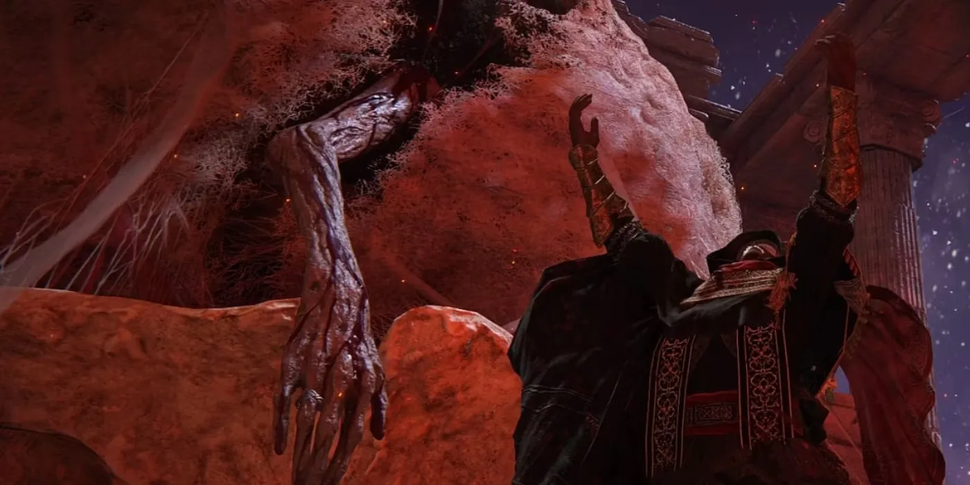 Победив обоих боссов, вы сможете прикоснуться к руке, свисающей из окровавленного кокона на троне Могга. Эта рука принадлежит полубогу Микелле, брату печально известного босса Маления, Десницы Микеллы.