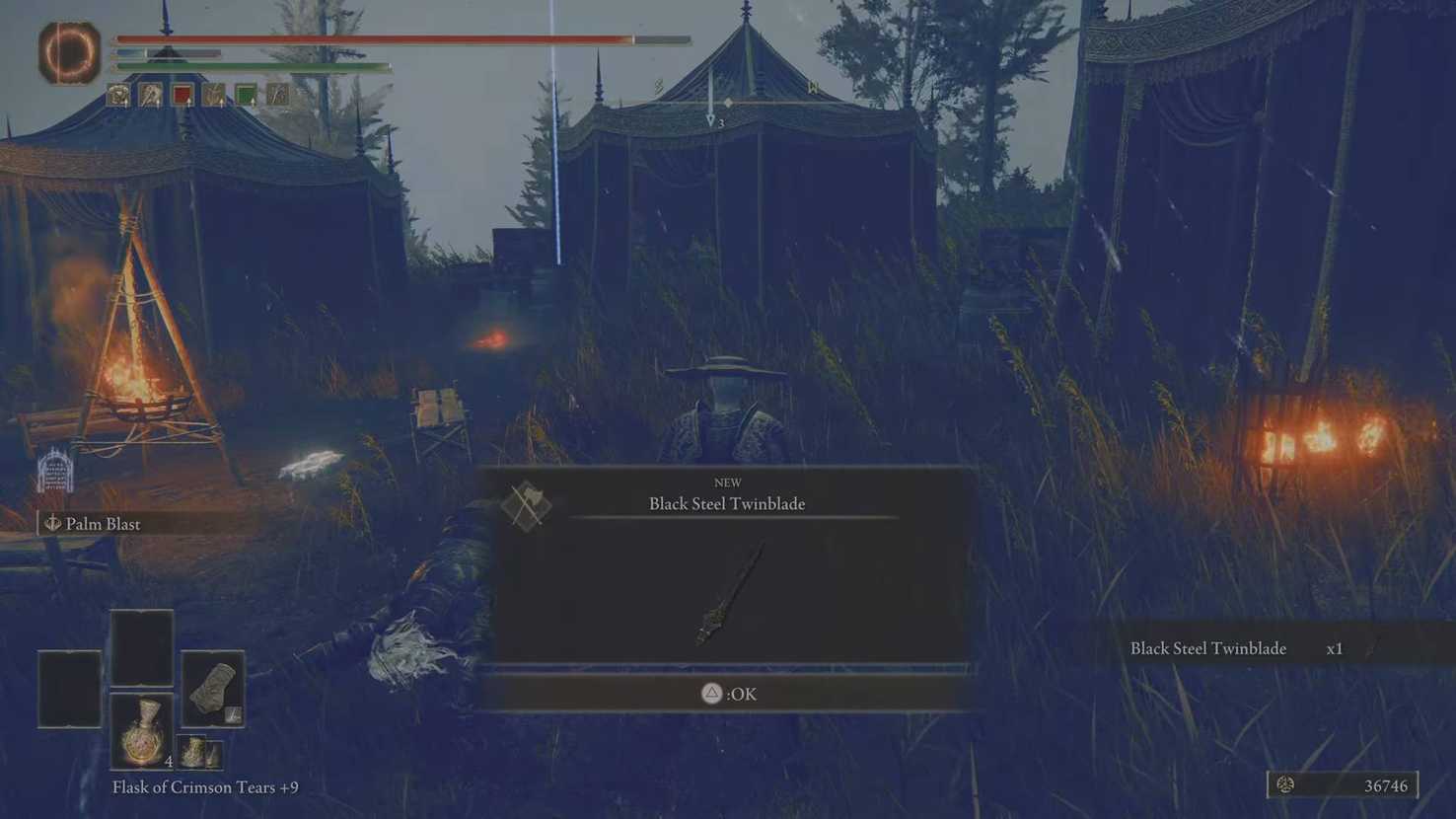 Вверх по склону, мимо нескольких скоплений солдат Мессмера, находится Черный рыцарь, владеющий Двойным клинком из черной стали. Уничтожьте этого рыцаря и получите в награду двулезвийный клинок.