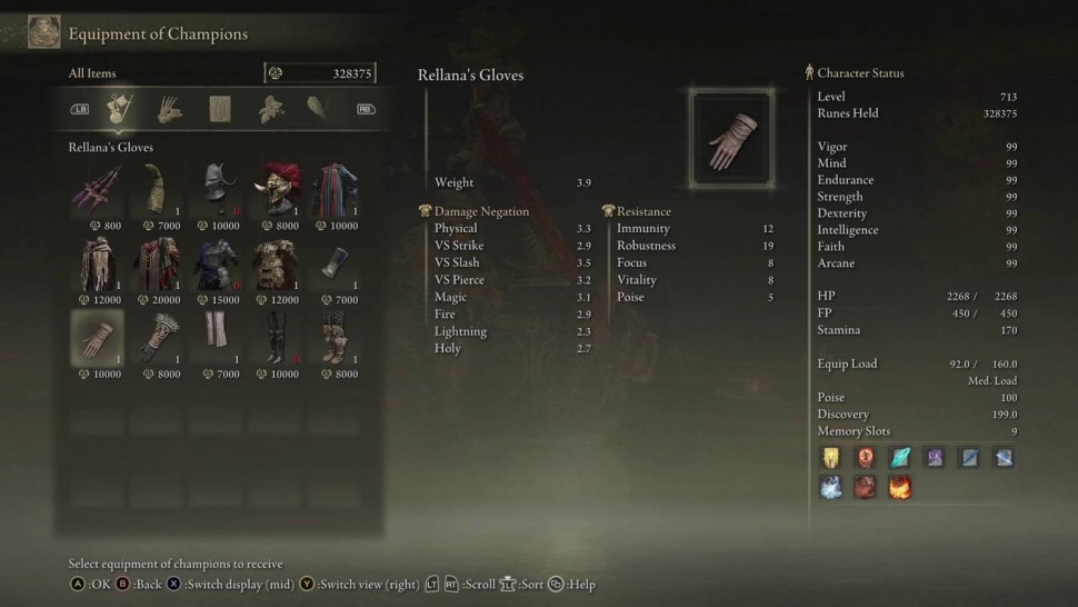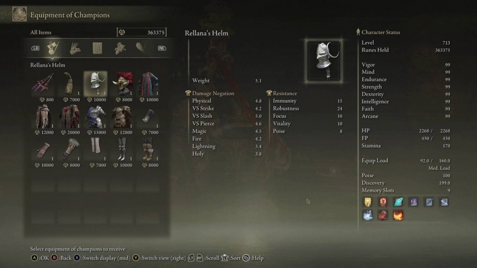 Комплект доспехов Релланы состоит из четырех предметов. Ниже приведены их цены и статы: