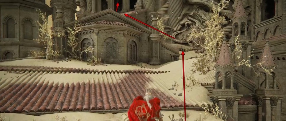 - Из Спирального подъема начните подниматься по лестнице, пока не выйдете через окно слева. Расправьтесь с врагом на крыше, а затем идите направо. Повернув за угол, вы встретите на крыше несколько могильных птиц, так что будьте осторожны.