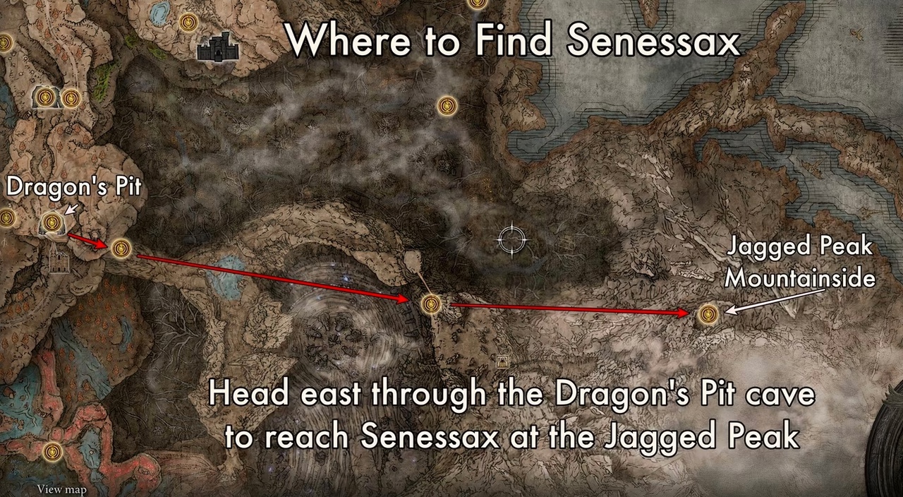 Чтобы попасть к Древнему дракону Сенессаксу, вам нужно пройти через пещеру Драконья яма на юге Равнины Грейвсит. Это приведет вас к основанию Зазубренного пика. Идите по горной тропе, и сначала вы наткнетесь на двух сражающихся дрейков. После этой схватки продолжайте подниматься вверх по тропе. Перед тем как добраться до финального босса этой зоны, вы столкнетесь с Древним драконом Сенессаксом. Победите Сенессакса, чтобы получить кузнечный камень Древнего мрачного дракона и обычный кузнечный камень Древнего дракона.