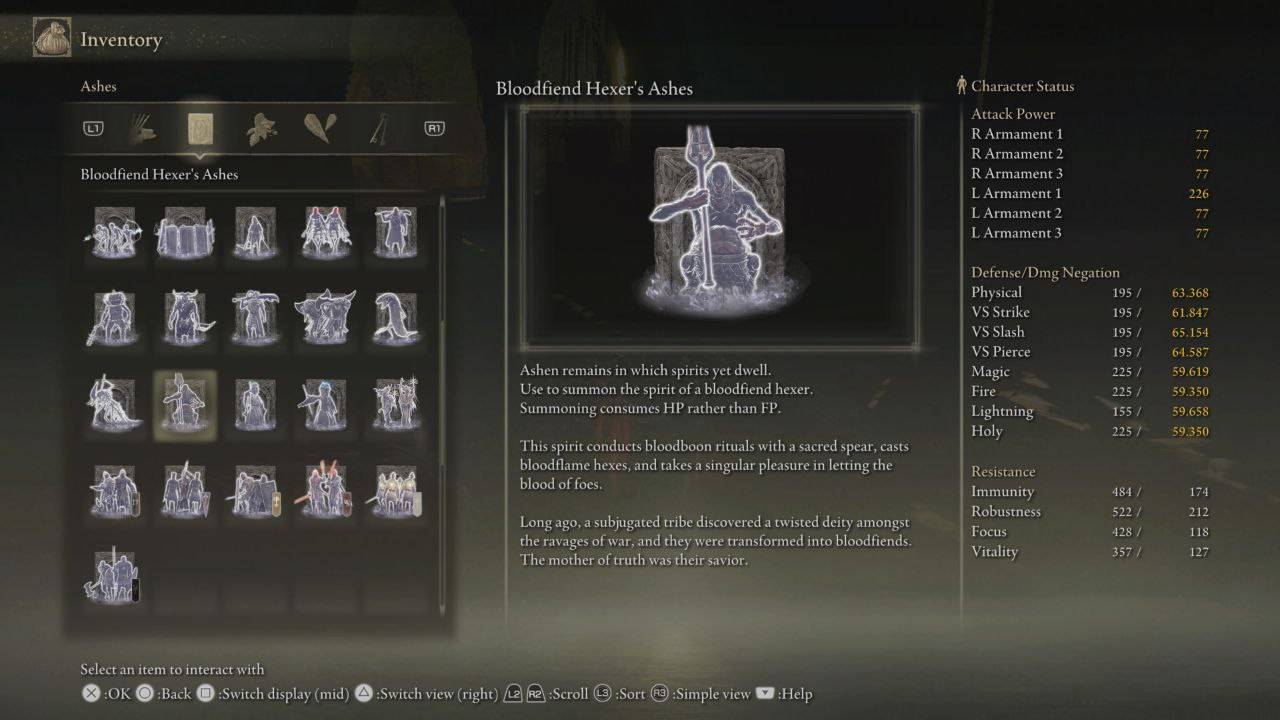 Пепел духа кровожадного гексера можно повысить до +10 с помощью Grave Glovewort, а в Shadow of the Erdtree его эффективность как в атаке, так и в обороне может быть увеличена с помощью Renowned Spirit Ashes. Чтобы призвать Кровавого Гексера, игроки Elden Ring не используют FP, но должны пожертвовать 500 HP.