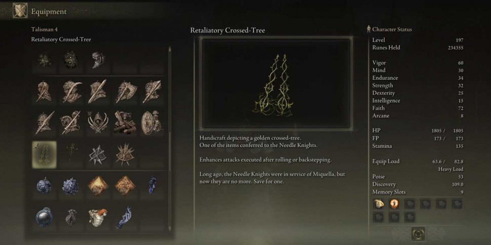 В частности, Retaliating Crossed-Tree Talisman увеличивает наносимый урон примерно на 15%. Игроки могут сочетать его с броней Леды, чтобы сделать эти атаки еще более мощными. В тандеме это позволяет создать новый тип билда, полностью сфокусированный на атаках с уклонением и броском.