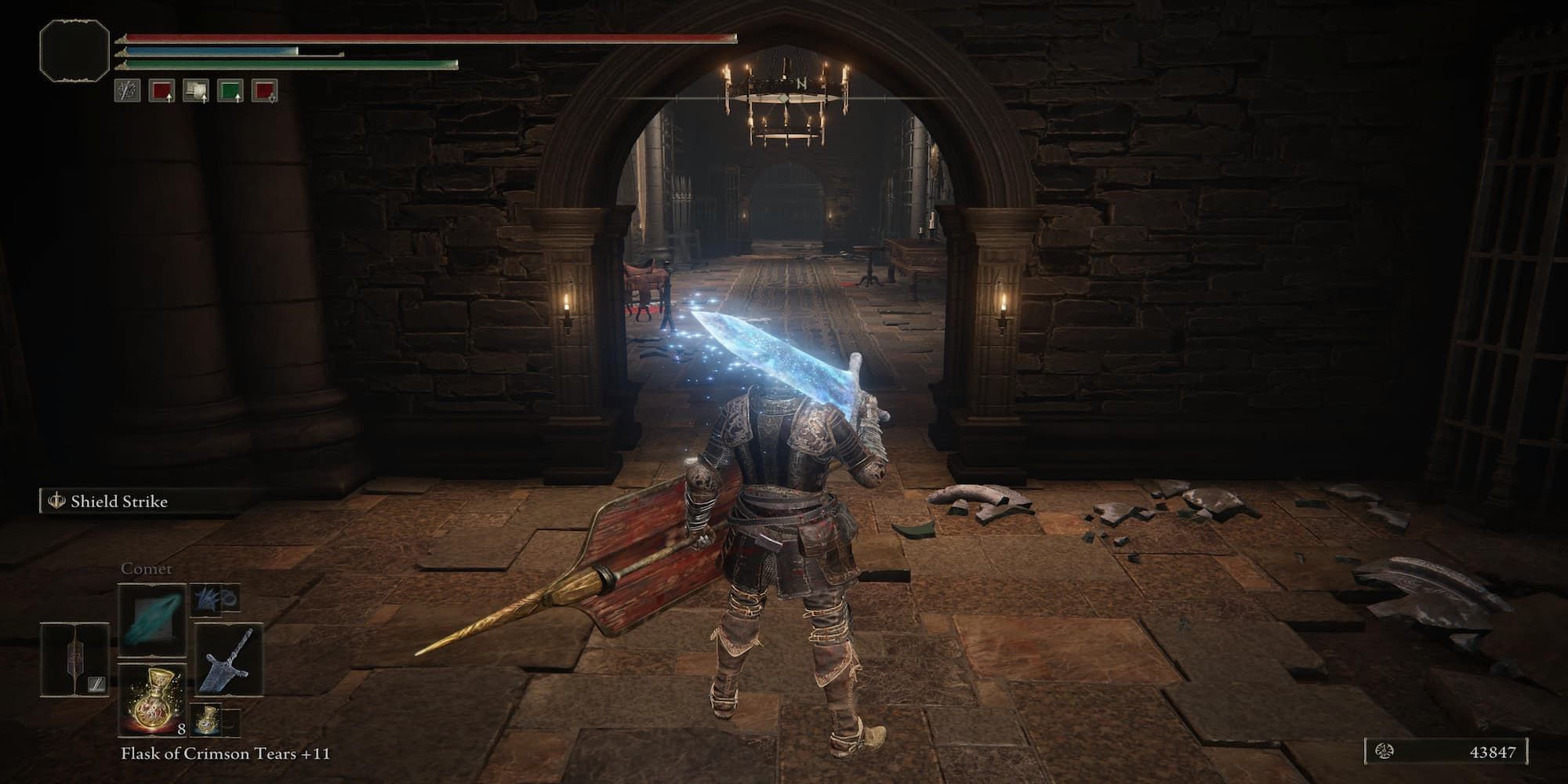 Пепел войны: Стена искр находится в подземелье наследия Теневой замок. Теневой замок - это в основном линейное подземелье, в котором игрокам нужно добраться до Хранилища, первого этажа Site of Grace. Отсюда посмотрите в левую сторону от главного хранилища, чтобы найти боковую комнату, которая ведет к лифту, поднимающему вас на нижний этаж.